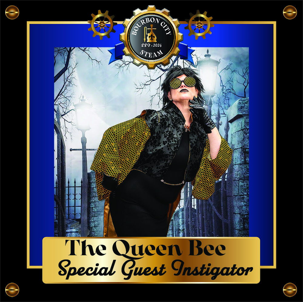 Whether you know her as Jennifer Noran, Captain Medea Asherah (She Who Walks Above The Sea), Admiral, or Queen Bee, one thing you can know for certain...she loves Steampunk! Noran started her foray into Steampunk by attending The International Steampunk Symposium in 2015. Since that time, she created The Airship Caduceus out of Lexington, Kentucky in 2016, ran such events as The Victorian Valentine Affair in 2019 and the Steampunkin’ Halloween Hullabaloo in 2021. Noran took over running The International Steampunk Symposium in 2023 and has moved forth from that adventure as the Queen Bee of Queen City Steam! Noran fell in love with the aesthetic and camaraderie of Steampunk. Along with attending and running events, she’s been creating logos and designs for such projects as the Kentucky Steampunk Society, The Chicago Steampunk Exposition, The Atlanta Steampunk Expo, The Traveling Revelers, and her own Airship. Queen City Steam’s goal is to create events throughout Indiana, Kentucky, and Ohio, collaborating with different groups and people to host joint events all over the tri‐state area. Not only will that make planning events easier, but it will give more opportunities for people to attend events all year round and in different locations. Through The International Steampunk Symposium, The Airship Caduceus and crew, Queen City Steam, and the wonderful genre that is Steampunk, Noran hopes that good deeds can be achieved, kindness and friendships can be kindled and creativity can be cultivated, all while having fun.